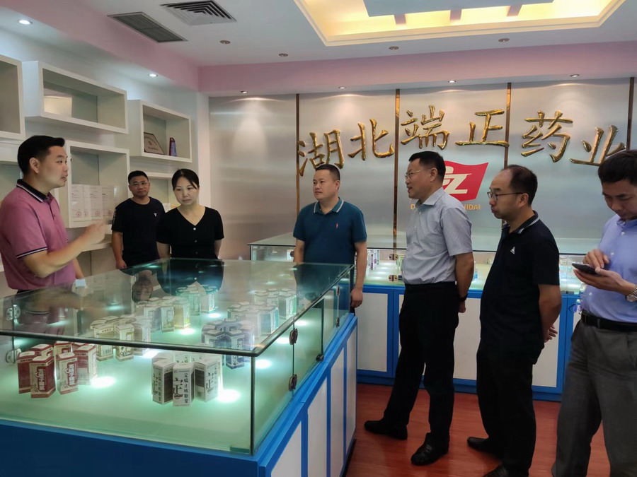 6月22日上午,安陸市人民政府市長黃國威一行到湖北端正藥業(yè)股份有限公司開展“聯(lián)企業(yè)、送政策、解難題、穩(wěn)主體”調(diào)研指導(dǎo)。 黃市長等領(lǐng)導(dǎo)在企業(yè)負(fù)責(zé)人